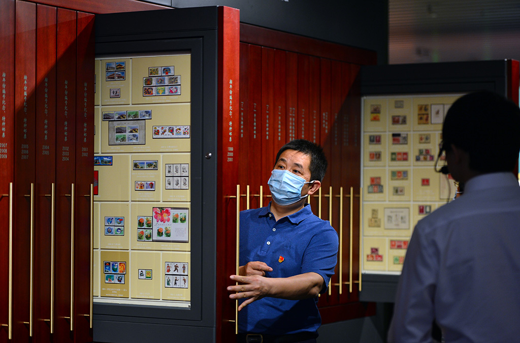 9月28日,觀眾在“中國郵票”展區參觀。人民網記者 陳斌攝