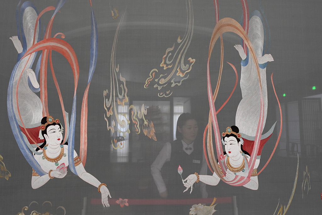 文瀚閣里收藏的大型雙面蘇繡《飛天》。人民網記者 陳斌攝
