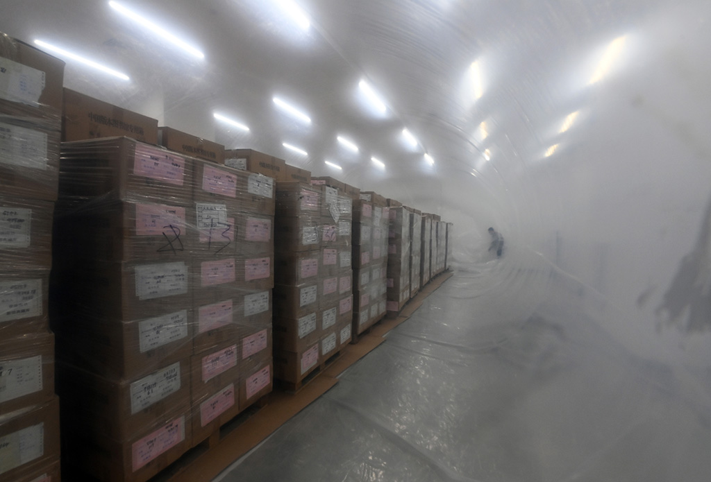9月30日,工作人員準備為書籍密封消殺,以備永久保藏。人民網記者 陳斌攝