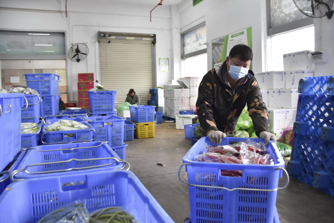 工作人員在湖南省長沙黃興海吉星國際農產品物流園分揀蔬菜(1月17日攝)。 新華社記者 白田田 攝