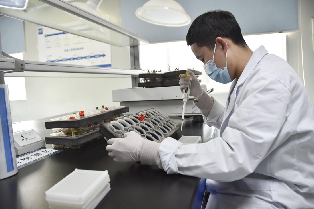 湖南省長沙黃興海吉星國際農產品物流園的工作人員在檢測蔬菜樣品(1月17日攝)。 新華社記者 白田田 攝