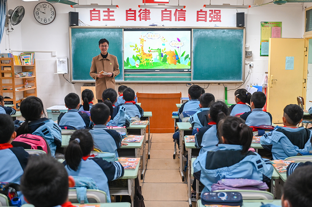 2月6日,廣西南寧市民主路小學教育集團民主校區,學生們在上語文課。人民網記者 嚴立政攝