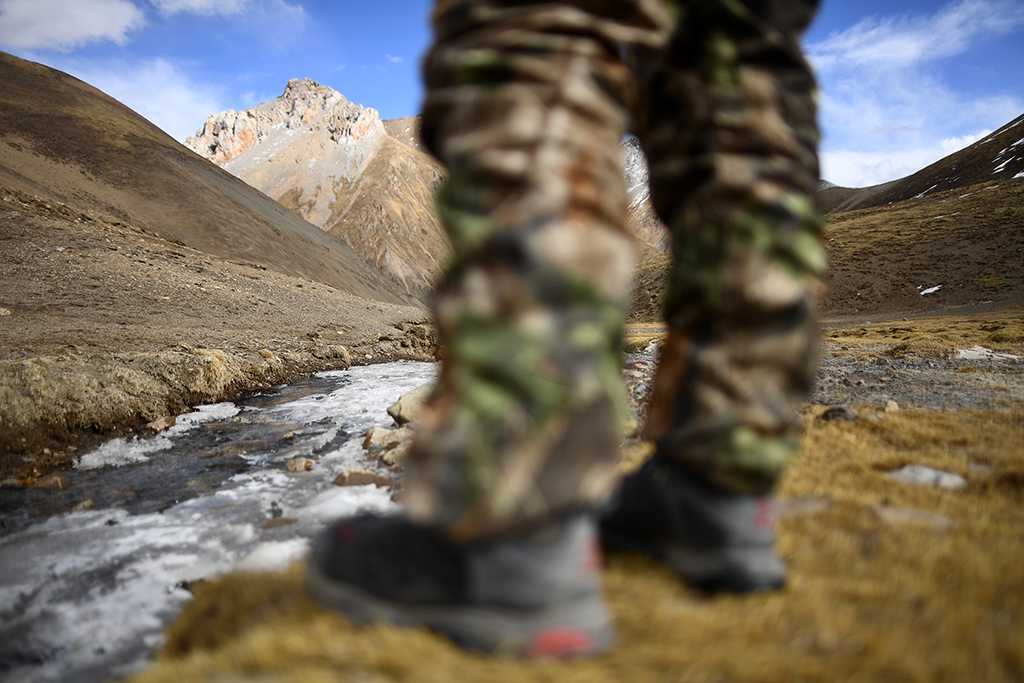 2月22日,更求曲朋在昂賽大峽谷內巡護。新華社記者 張宏祥 攝