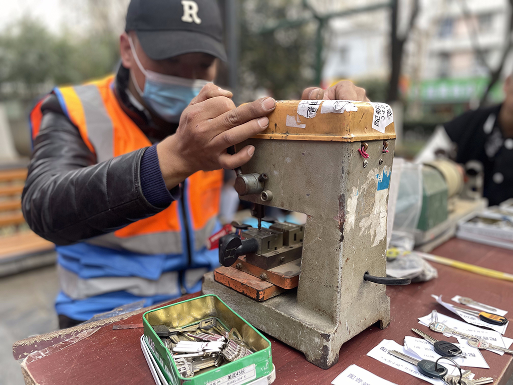 3月3日,湖北武漢武昌區中華路街道舉辦學雷鋒志愿服務活動,在大幫小助便民集市上設有免費縫補、配鑰匙、理發、磨刀等攤位,滿足居民各類生活服務需求。人民網 周恬攝