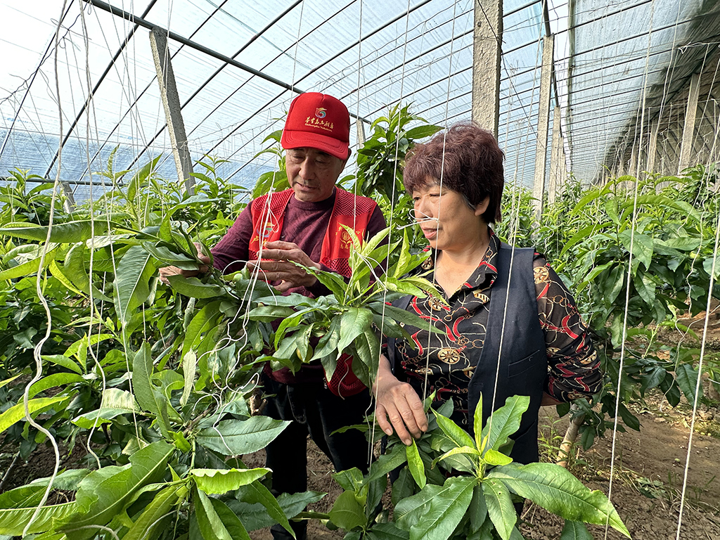 3月5日,雷鋒日當天,河北秦皇島市盧龍縣志愿者走進溫室大棚指導種植戶果樹管理。人民網 袁志廣攝