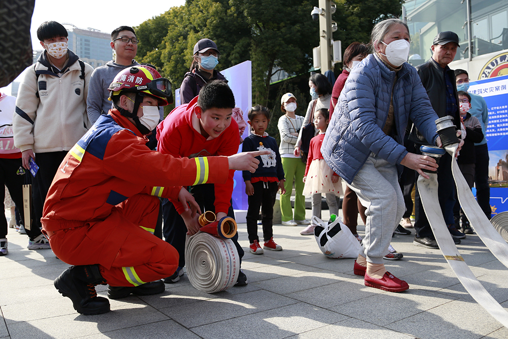 3月5日,消防隊員正在指導小朋友鋪設消防水帶。當日,上海消防在上海港國際客運中心碼頭舉行消防科普學雷鋒志愿服務活動。人民網記者 龔莎攝