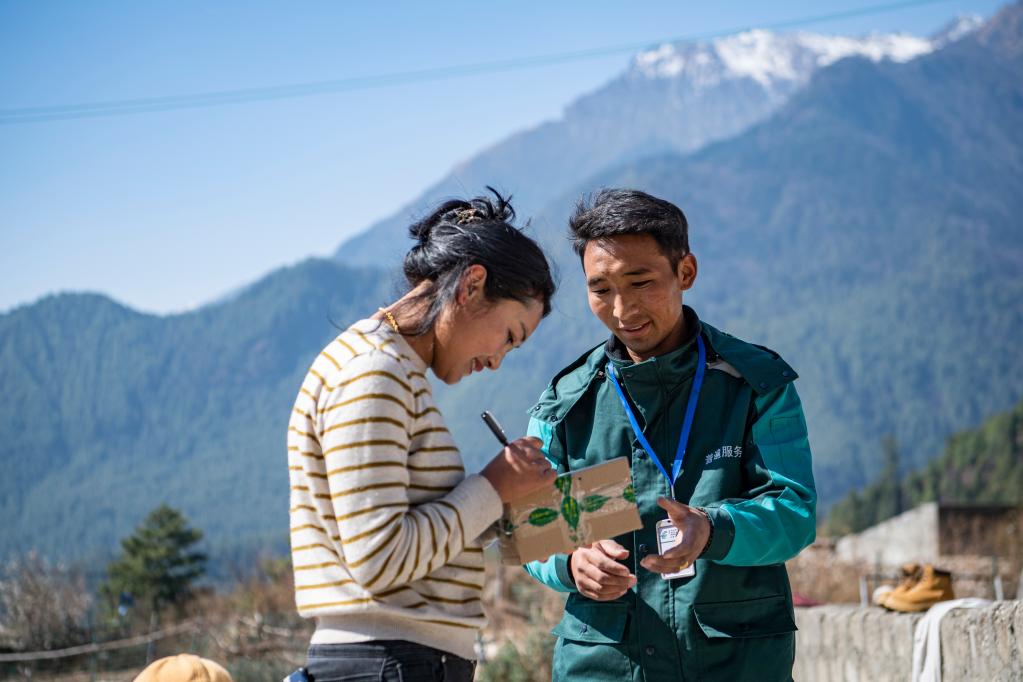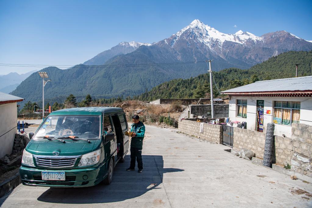 巴桑頓珠把包裹放上車,迎著喜馬拉雅山南麓的暖濕空氣,開始了一天的配送。