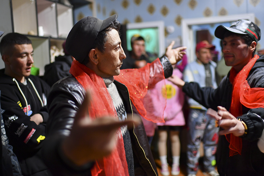 新郎買熱買提汗·青鐵木爾的親友在家中跳舞慶祝(3月18日攝)。新華社記者 胡虎虎 攝