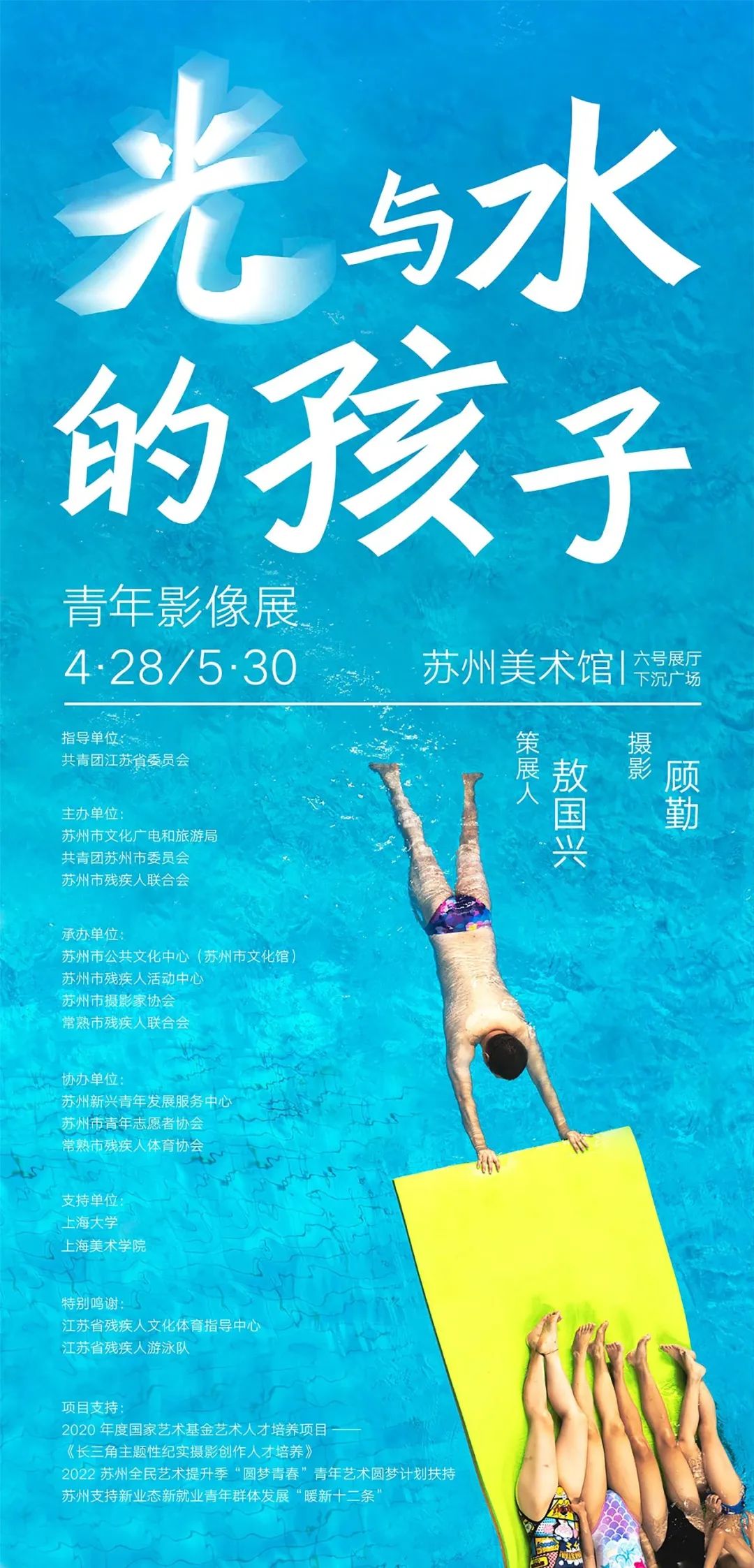 近日,“2023蘇州青年藝術周”暨《光與水的孩子》青年影像展啟幕儀式在蘇州市公共文化中心舉行。展覽以江蘇省殘疾人游泳隊青年為主題,用60余件影像作品展現了他們身殘志堅、拼搏無畏,閃耀著人性光輝的故事。本次展覽至5月30日結束。