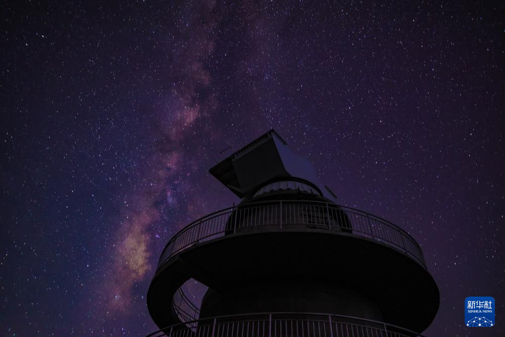 已經完成首吊的核心陣試驗樣機矗立在星空下(9月25日攝)。
