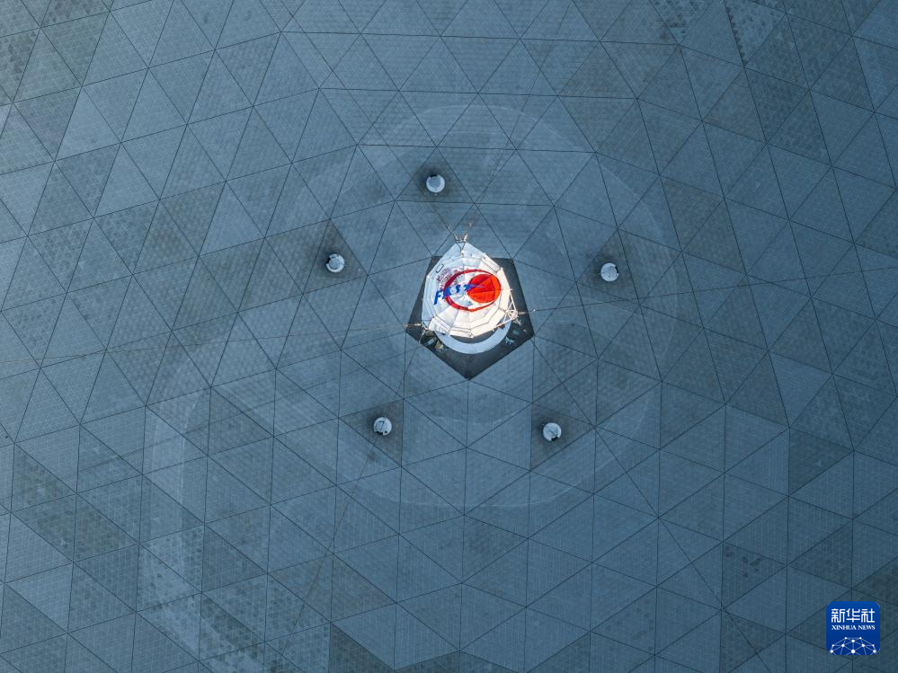 中國天眼在落日余暉中(無人機照片,維護保養期間拍攝,9月25日攝)。
