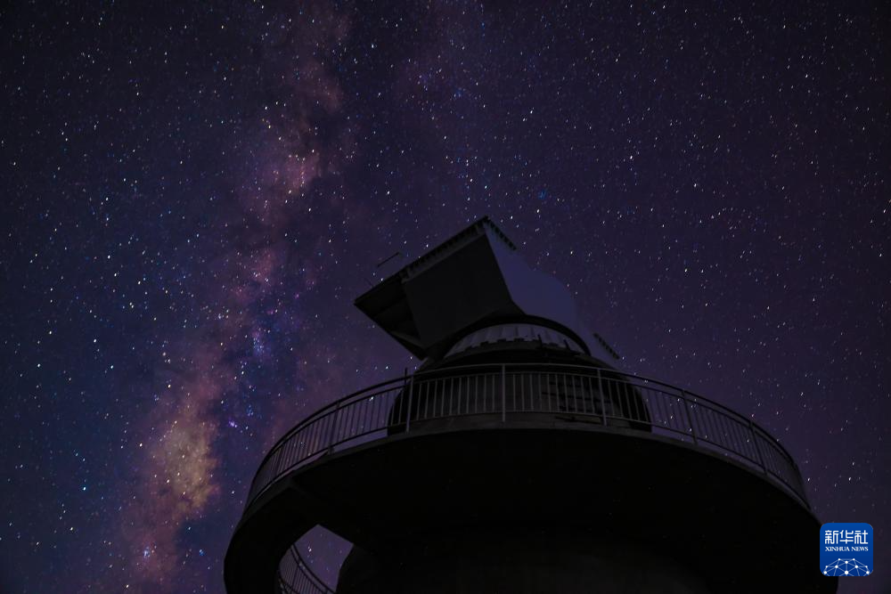 已經完成首吊的核心陣試驗樣機矗立在星空下(9月25日攝)。