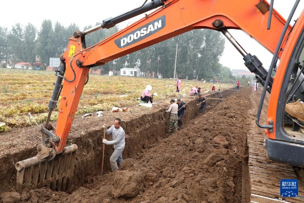 10月28日,河南省焦作市溫縣岳村街道趙郭作村農民在田間收獲鐵棍山藥。
