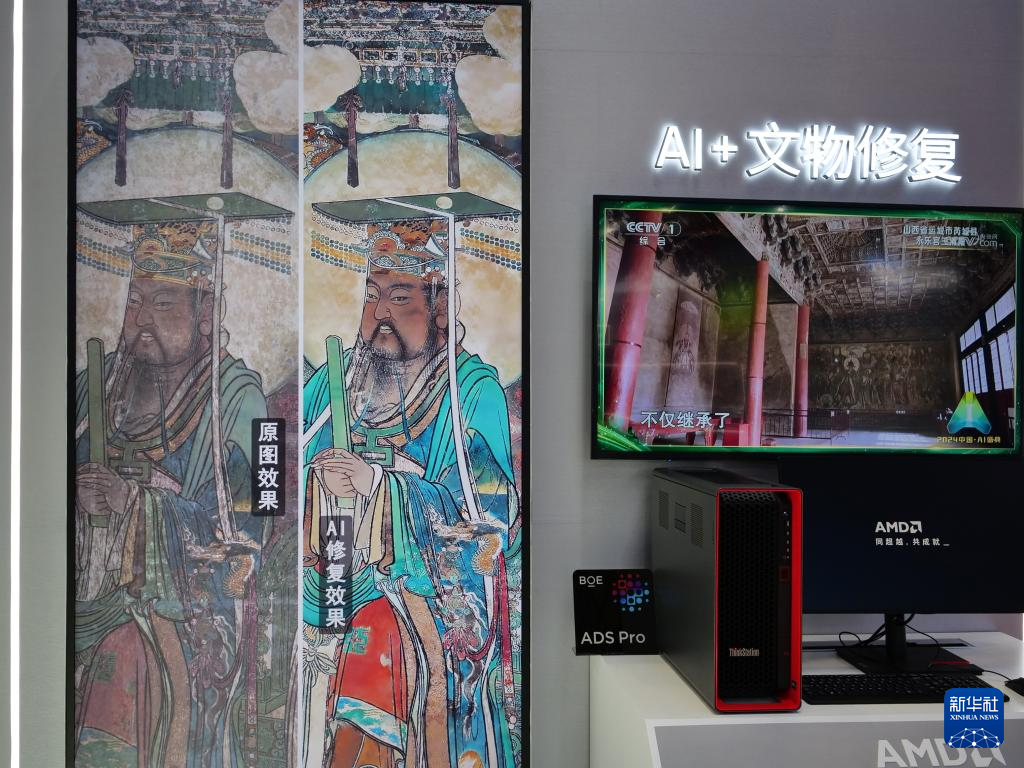 11月5日在第七屆進博會技術裝備展區AMD展臺拍攝的“AI+文物修復”技術展示。