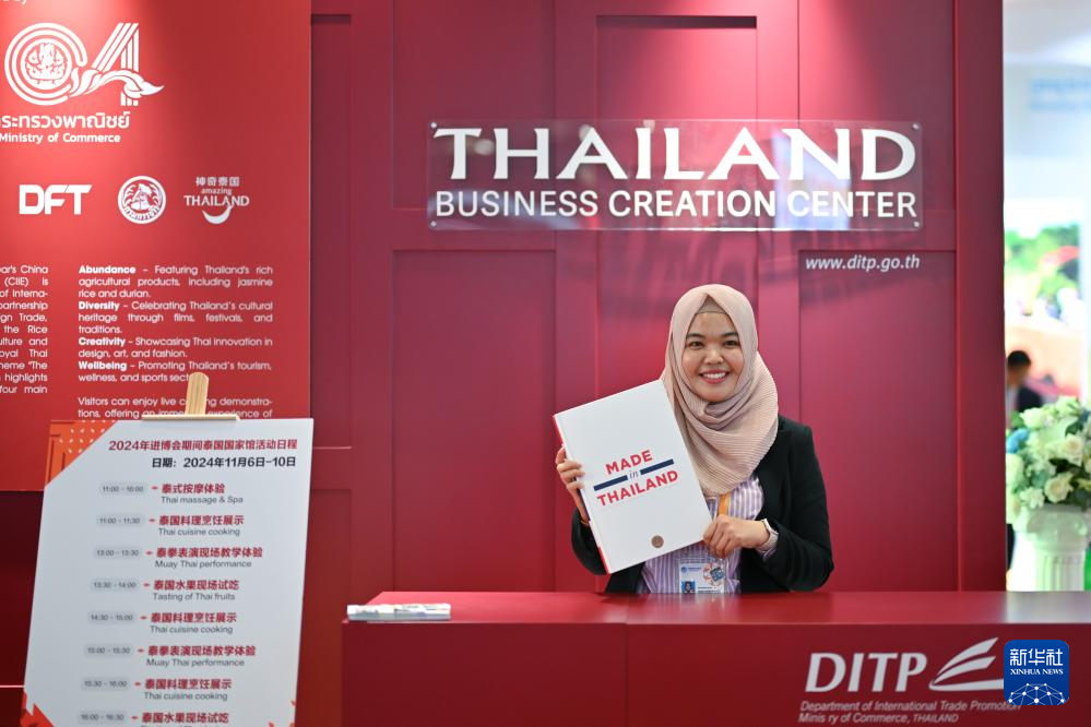 11月5日,工作人員在第七屆進博會國家展泰國館留影。