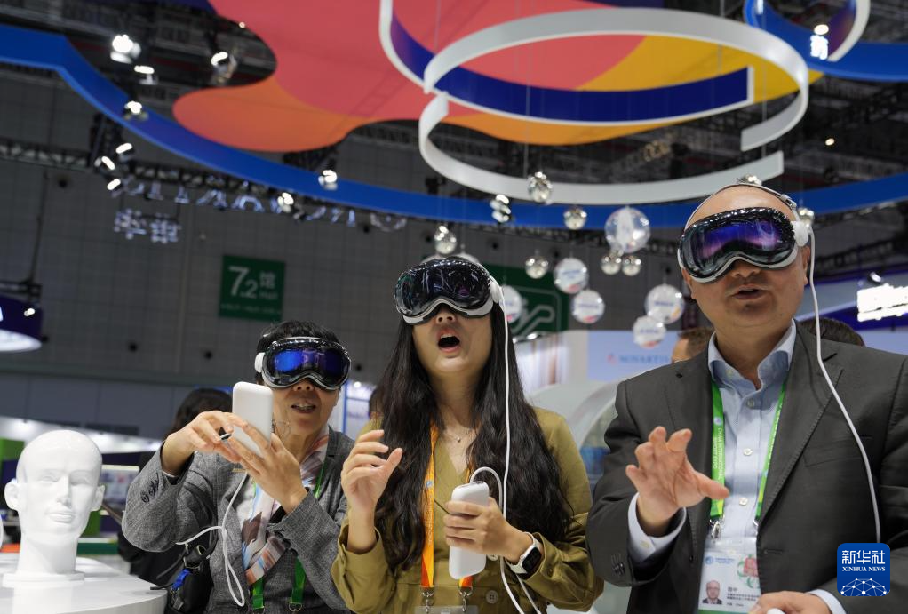 11月5日,參觀者在第七屆進博會醫療器械及醫藥保健展區諾華展臺利用AR技術體驗放射配體療法(RLT)的治療過程。