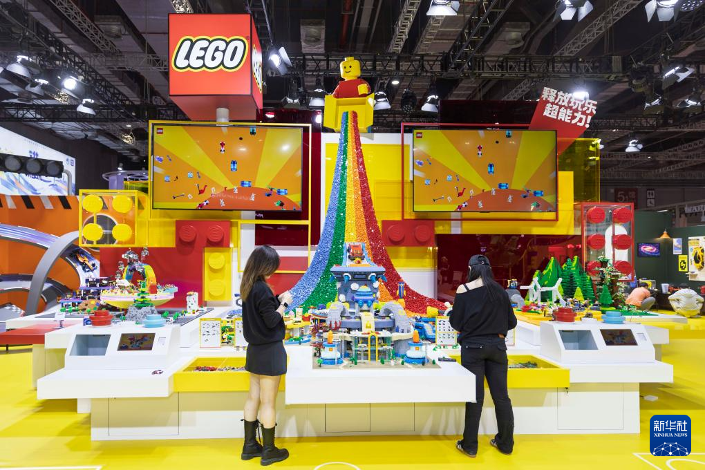 11月5日在第七屆進博會消費品展區樂高集團展臺拍攝的主題裝置。