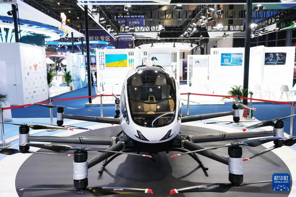 這是11月5日在第七屆進博會創新孵化專區拍攝的億航無人駕駛載人電動垂直起降航空器。