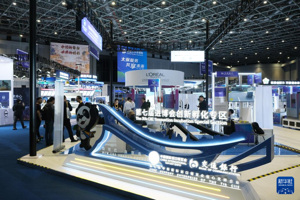 這是11月5日拍攝的第七屆進博會創新孵化專區現場。