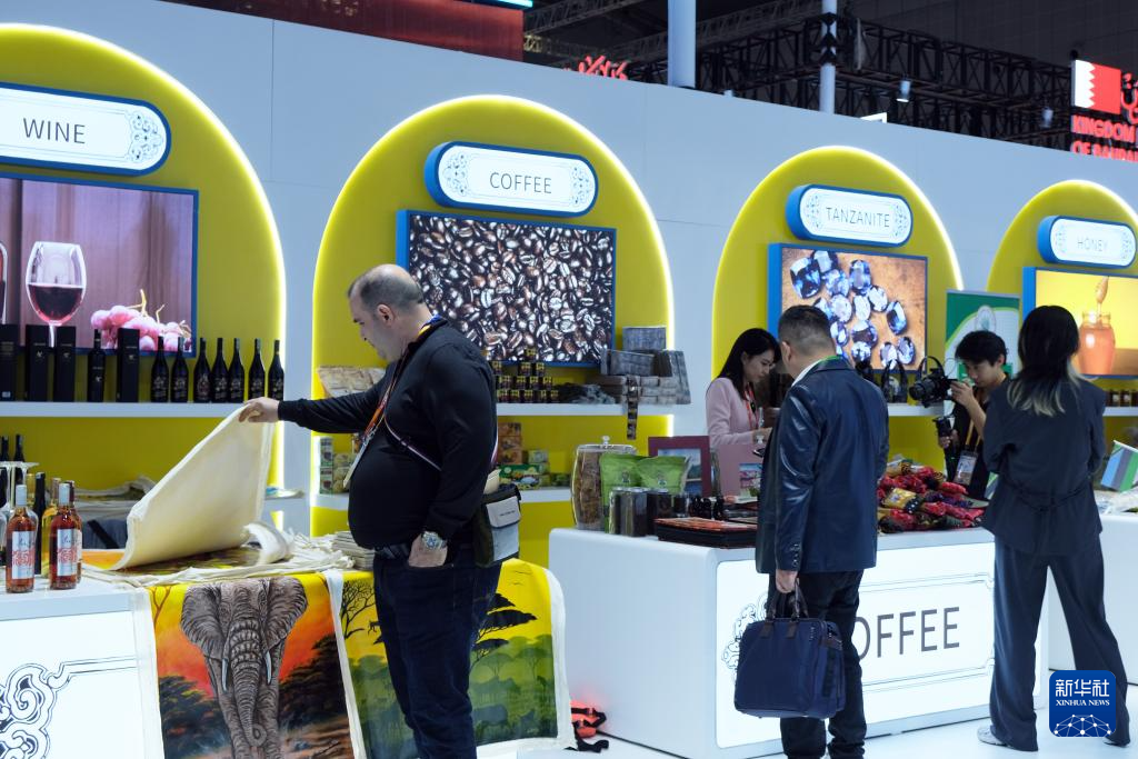 11月5日,參觀者在第七屆進博會國家展坦桑尼亞國家館內查看展品。
