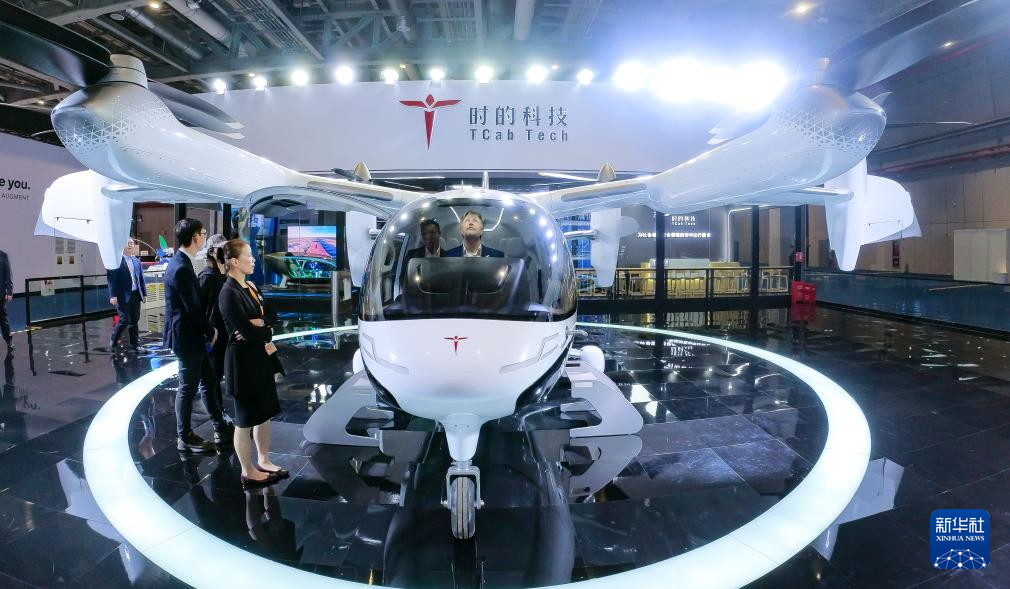 11月5日,參會者在第七屆進博會汽車展區體驗時的科技E20 eVTOL電動垂直起降飛行器。