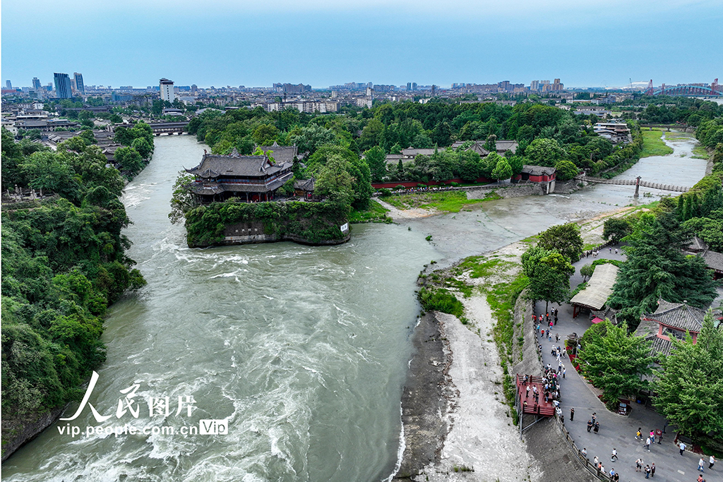 2025年6月9日,位于新疆巴音郭楞蒙古自治州尉犁縣塔克拉瑪干沙漠東北部的“塔塔秘境”羅布湖“沙水”相依,水天一色,美景如畫,像一顆藍寶石鑲嵌在瀚海之中,吸引了眾多游客來觀光旅游。汪志鵬攝(人民圖片網)
