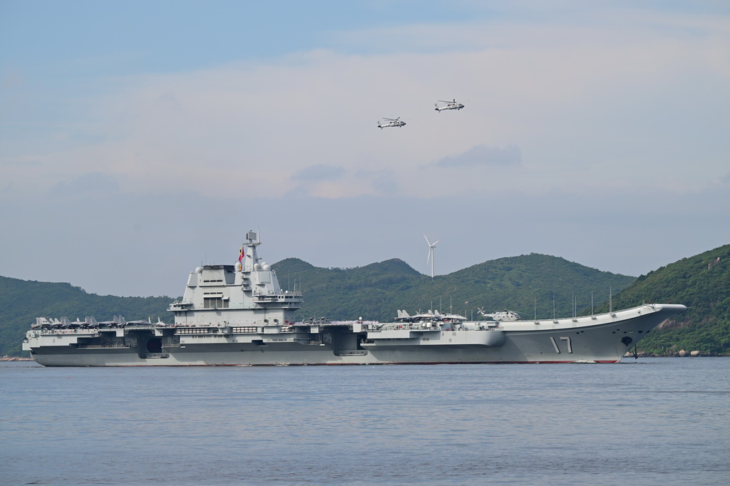 7月3日,中國海軍山東艦航母編隊抵達香港。這是山東艦行進在香港水域。新華社記者 朱煒 攝