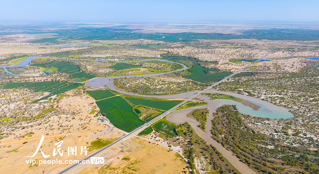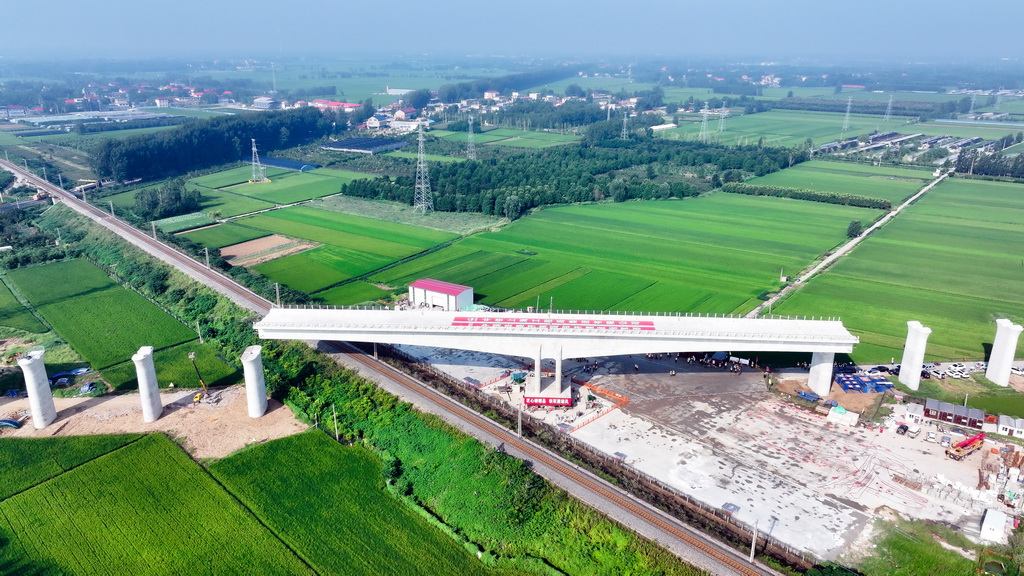 2025年8月28日,一列動車組列車在甘肅省張掖市境內的蘭新高鐵線上飛馳。